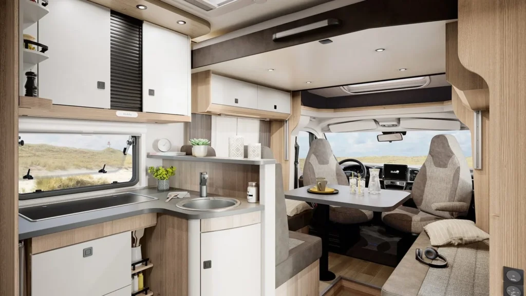 ONTOUR T 700 FH tarjoaa täydellisen yhdistelmän modernia matkustusmukavuutta ja käytännöllisyyttä. Malli on osa Hobbyn kompaktia ONTOUR‑sarjaa, joka on suunniteltu kulkemaan ketterästi myös kapeilla teillä ja kaupunkialueilla.